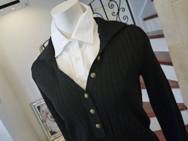 ◆リブ編みニットとシャツの一体型トップス。シャツは襟だけなので取り外しできます。