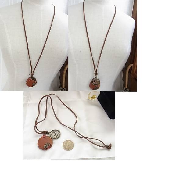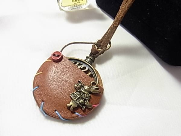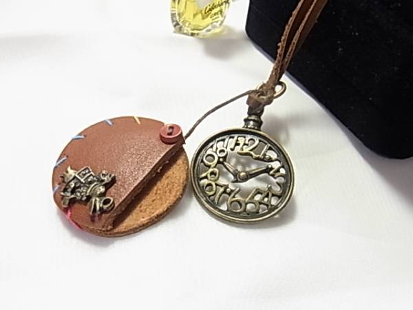 ●皮革製●トップポケットに時計モチーフ小業が利いたネックレス