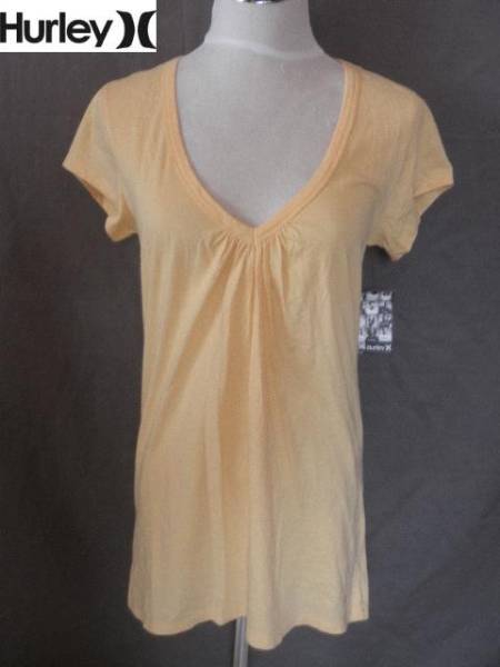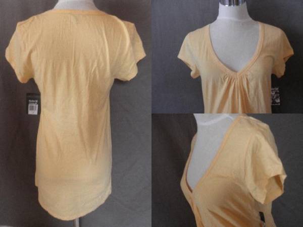 USA購入 サーフ系 Hurley胸元ギャザー無地VネックT US Mオレンジ