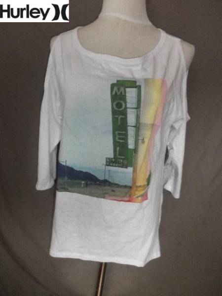 ◆USA購入ハーレー【hurley】肩腕露出デザイン七分袖丈T US L白