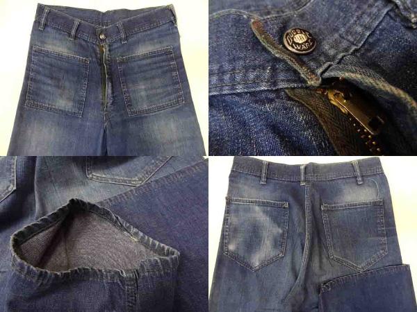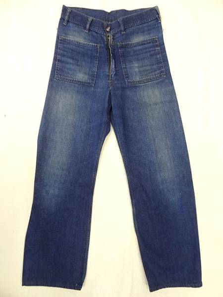 コンディション:左裾に3ミリの小穴あり,後ろ側の左ポケットの縁にほつれによる小穴,後ろ側右裾に5ミリ弱の小穴が4箇所ほど集まってあります。どれも年代と用途を考慮しても細かいものばかりで酷いものや気になるほどのものはありません。致命的なダメージなどもありません。コンディションはヴィンテージ慣れてしている方なら誰が見てもグッドコンディションだと思われると思います