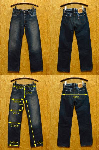 | 商品説明 | ご覧いただきまして、ありがとうございます。 【表記】W31 L34 【平置き・実寸】ウエスト内寸実測83cm(平置き41.5cm トップボタンの高さで計測) 股下78cm 股上22cm ワタリ28.5cm 腿幅23cm 膝幅21.5cm 裾幅19.5cm ヒップ幅48cm 【素材】 コットン100% 【カラー】インディゴ 【企画・販売】リーバイ・ストラウス・ジャパンKK 【生産・縫製国】日本 【生産年】2001年2月 【状態】古着 美品 【ディティール】 ボタンフライ(亜鉛製) 打ち抜き亜鉛製トップボタン/裏刻印J38 レッドタブ両面刺繍スモールe(R表示・レーヨン製100%) 銅製リベット(被せリベット/オス側アルミ製) アーキュエイトステッチ(ダイヤモンドポイント) 紙パッチ インサイドシームダブルステッチ LOT-522-03 ◆リーバイス522-03◆ フロントボタン2個のローライズ仕様。 ベルトが見えやすくコーディネートの良いアクセントになります。 品よく大人に、穿いていただけると思います。 色落ち加工:ハンドシェービングのヒゲ アタリ 縦落ちがいいティストを出しています。 シルエット:テーパードが効いたスッキリしたシルエット。 股上:浅い ローライズですのでウエスト部は腰骨上あたりになります。 ヒップサイズを第一に考慮に入れましてサイズをご選択ください。 【商品管理NO.2390】 |