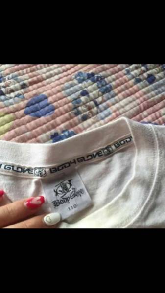 白色の為、首から胸あたりに薄っすらシミがあります。