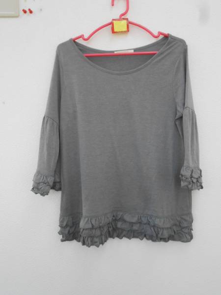 ①ローリーズファーム グレー 七分袖 フリルつきカットソー