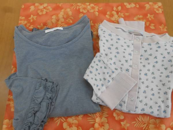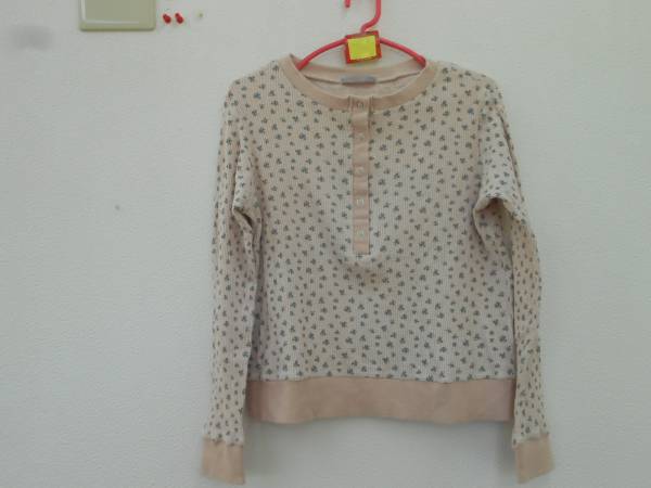 ②MIXT 薄ピンク ワッフル生地に花(葉)柄 長袖カットソー