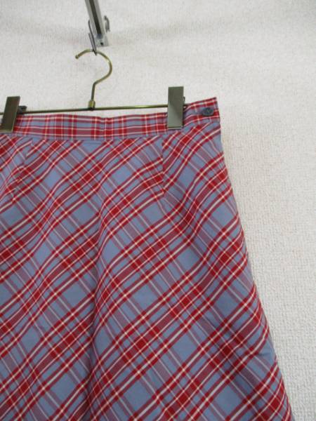 商品紹介 | チェックのAラインスカートです。 広がり過ぎない形が上品な印象です。 地色はブルーがかったグレーで、赤と白いラインが入っています。 《素材》 表地:綿100% 裏地:ポリエステル100% |