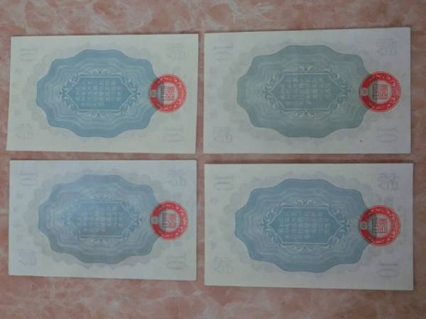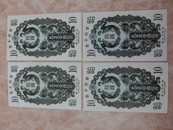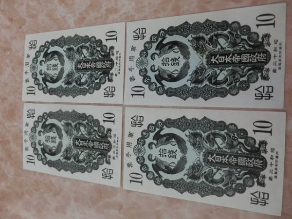日華事変軍票 甲号10銭の未使用を4枚セットです。