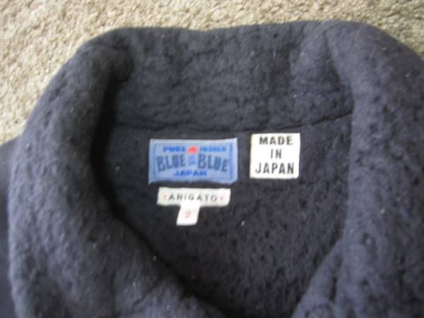 数回着用 美品の ブルーブルー インディゴ中綿ジャケットです。2サイズ(M)、綿100%、裏地:ポリエステル100%です。実寸は、肩幅44、身幅50、着丈68.5、脇下袖丈48CMです。裏地はフリース素材の保温性高いジャケットです。格安出品いたします!!