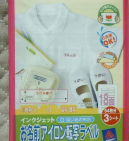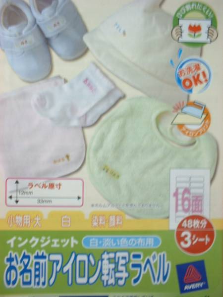 お名前アイロン転写ラベル(白・淡い色の布用)