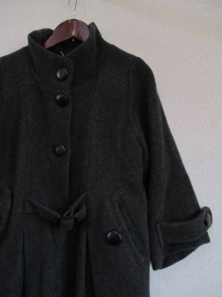 | 商品紹介 | グレーのデザインコートです。 ウエストのベルトがデザインのポイントになっています。 ウエスト部分にプリーツが入っていて、下はふんわりしていますが、 立て襟なので甘すぎずに着られます。 袖は7分~8分位です。 《素材》 表地:ウール70% アクリル30% 裏地:ポリエステル100% |