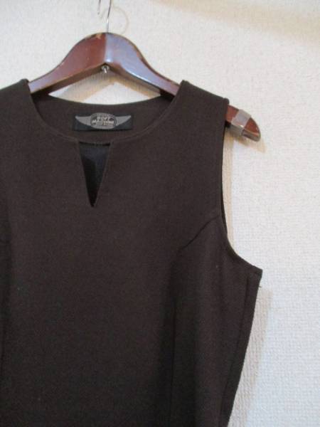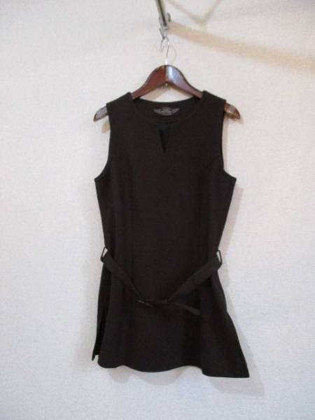 | 商品紹介 | 茶色のノースリーブチュニックです。 ベルトの丸いバックルがデザインのポイントになっています。 ベルトはやや下側、ローウエストの位置についています。 両横の裾には15cm程スリットが入っています。 《素材》 ポリエステル100%  |