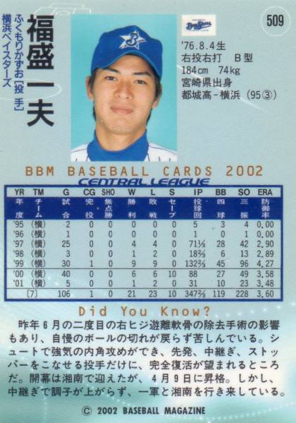 BBM 02年 509 福盛 一夫/横浜ベイスターズ