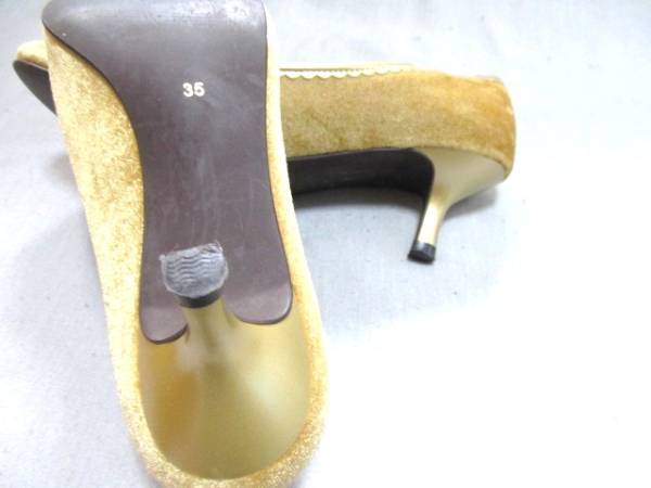 【表記・サイズ】 35 参考サイズ Sサイズ→22-22.5cm→35-36インチ Mサイズ→23-23.5cm→37-38インチ Lサイズ→24-24.5cm→38-39インチ 【平置き採寸】 約23cm ヒール高 H5cm 【使用感】 AB(多少使用感、保管時のクセキズありますがまずまずのUSDE) N ・新品 S ・未使用品または未使用とみられる商品 A ・数回使用程度の非常にキレイな商品 AB ・多少の使用感があるが全体として状態のよい商品 B ・多少の汚れ、キズ、スレ、毛羽立ちなど、普通に使用感が見られる商品 BC ・ ある程度の使用感があり、傷みが目につく商品 J ・何らかの難あり訳ありがみられる商品 USDEの状態は個人差があります事をご理解ください。また、USDEの為シミ・・毛玉など見落とす可能性もあります。神経質な方のご入札はご遠慮願います。 商品は気を付けてチェックをしておりますが、見落とす場合もございますのでご理解願います。特に、皮製品・シルバー製品につきましては、保管時などに付いてしまうような僅かな小キズ等はご了承下さい。 他にも出品しています★ 管9b | ||
