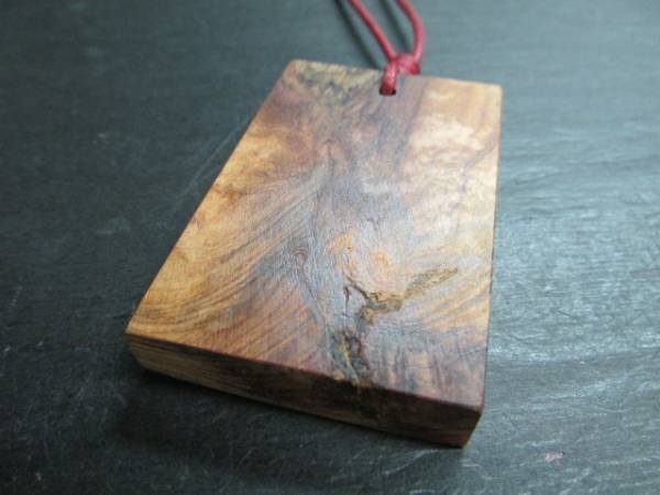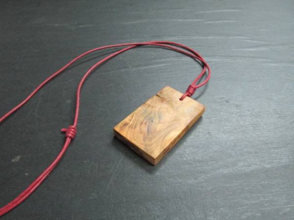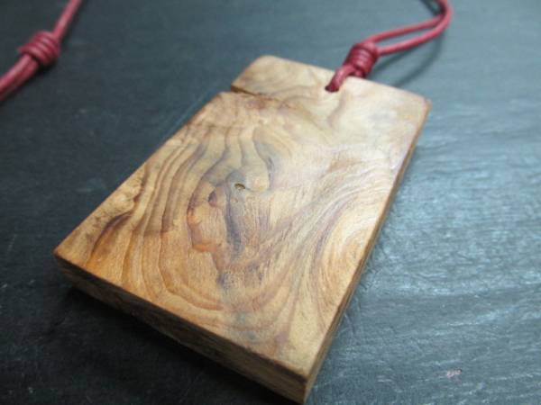 屋久杉は屋久島独特の気候と地形、地質(花崗岩質)のため成長が遅く目が詰まって樹脂成分が多く腐りにくい特徴を持っています。銘木としての屋久杉は千年以上の屋久杉を言い、二千年以上の屋久杉には神が宿っていると言われています。屋久杉の伐採は複雑な形状の根元の部分を避けて地面から2mぐらいのところから伐採され、この残された切り株の部分を土埋木といいます。屋久杉の伐採が禁止されている現在、屋久杉の土埋木はほとんど取りつくされとても希少性の高い銘木になっています。その屋久杉土埋木を使ってペンダントを作ってみました。