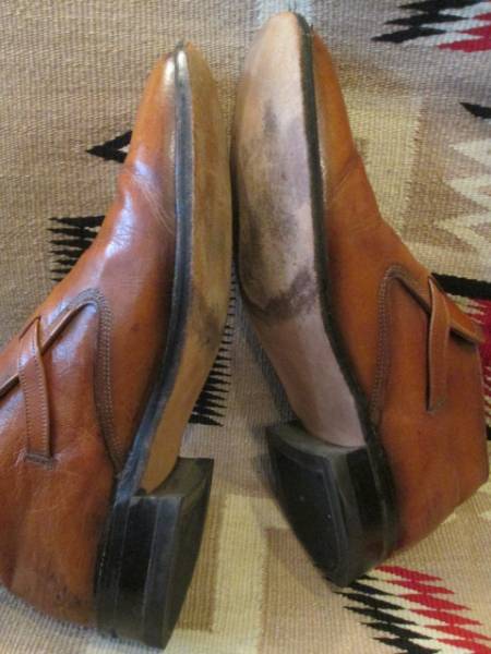 ★ アメリカで買い付けましたヴィンテージのレザーシューズです。70年代頃のペアにかと思います。メーカーはFREEMAN。表記サイズは12B,足裏長さ32,5cm、足裏最大幅10,5cmです。おおよそ28cmくらいの方にちょうど良いと思います(個人差がありますのであくまで参考まで)。内部のベロがゴムになっていますが、そこが両足とも1cmずつ切れてます(着用には問題ない箇所で見えません)。それ以外は特にダメージもなく全体的に程度の良い一足です。ビンテージ物とご理解頂いてお願い致します。