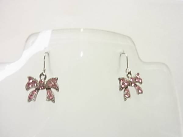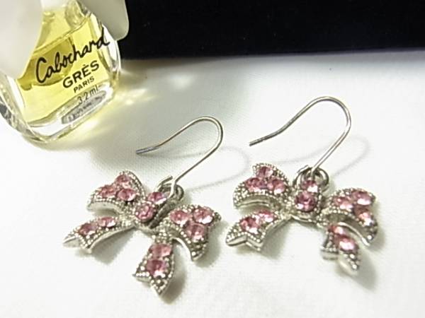 キュートラブリー★ピンクのジュエルストーンリボン型のピアス★++