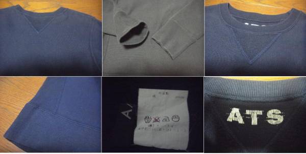 A/T エー・ティー長袖スエットトレーナー両Vガゼット 紺
