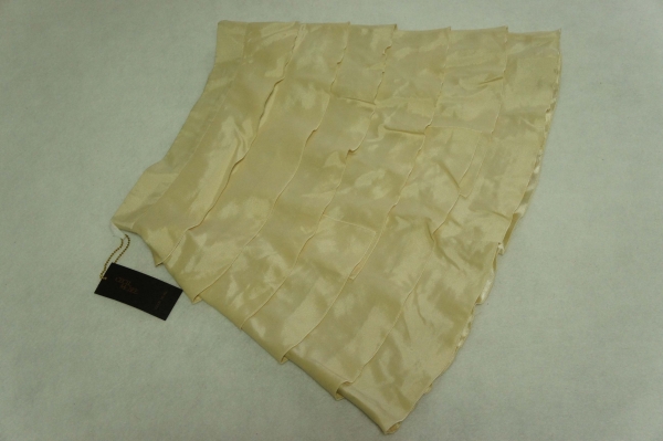 | 実寸サイズ | 【〝ご注意〟平置きにて計測しています。多少の誤差が生じます事を予めご了承下さいませ 】 ■ウエスト部分幅 約32cm(スカート上部の内側 左右直線寸法) ■スカート丈 約44.5cm(スカート上部から裾までの寸法) ■スカート裾幅 約57cm(スカート裾部分の左右直線寸法)一番広げた状態 |