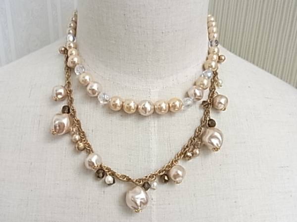 美しく輝くパールビジューにガラスビーズ◎2連ネックレス豪華◇