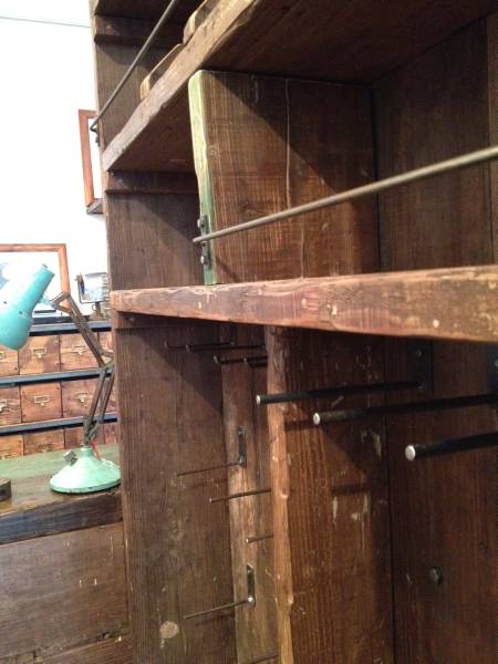 とても可愛く、味わい深いアンティーク材を使用したディスプレイシェルフとなります。収納・ディスプレイ・キッチン棚にと♪