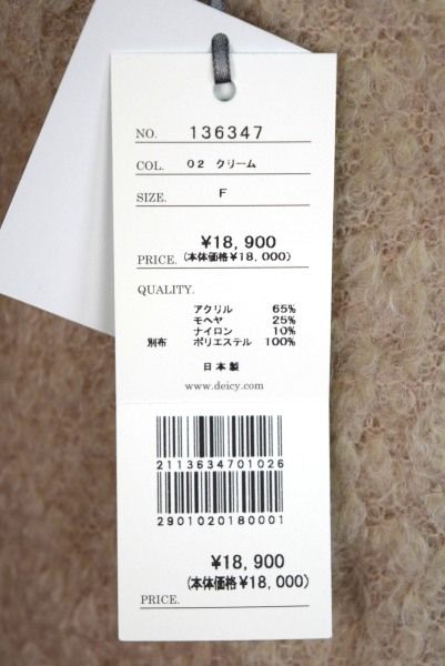 素材: アクリル65%、モヘア25%、ナイロン10% 別布ポリエステル100%