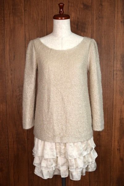 新品 deicy 日本製 定価1万8900円 モヘア混 フリル ニット ワンピース FREE 管理番号N47