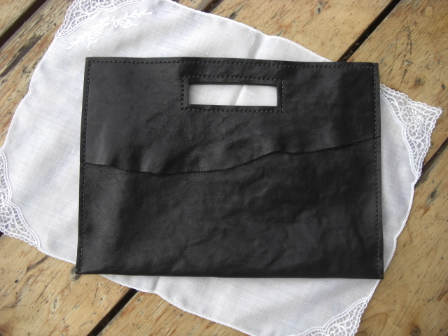 常時携帯する(財布、眼鏡、携帯、筆記用具)を入れてみましたが、少し小さかったので、出品することに。