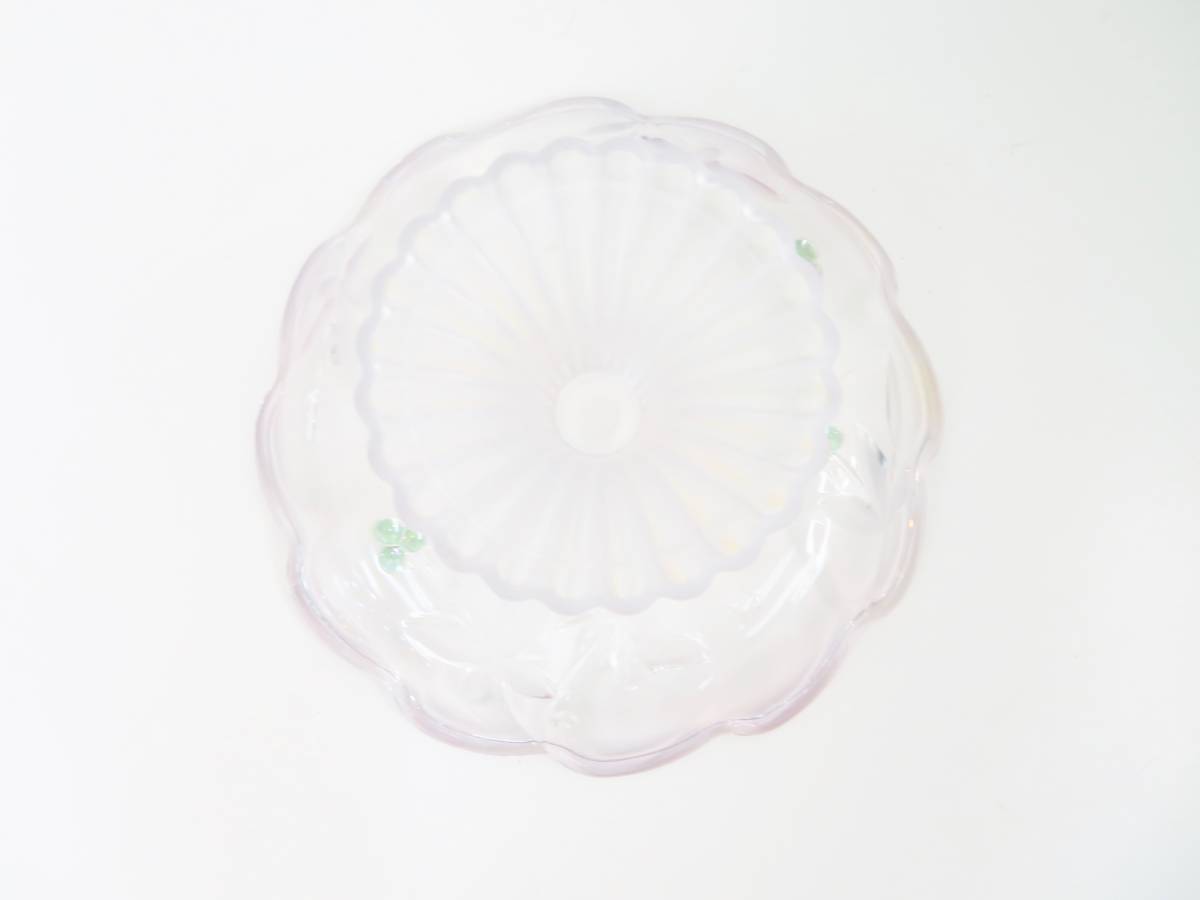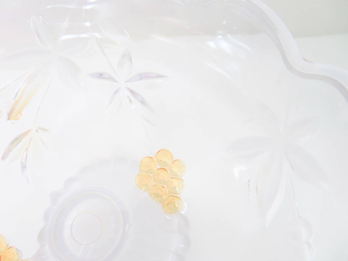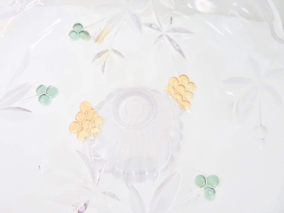 未使用品◆ケーキスタンド ケーキ台 ケーキ皿 ブドウ柄 木の身柄 花形 ガラス 食器 洋食器 管理2011 Z-1
