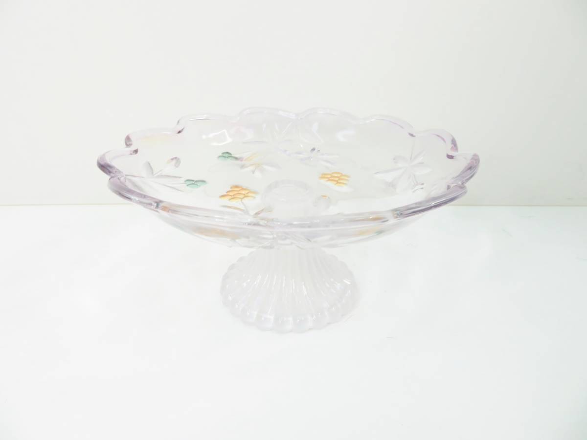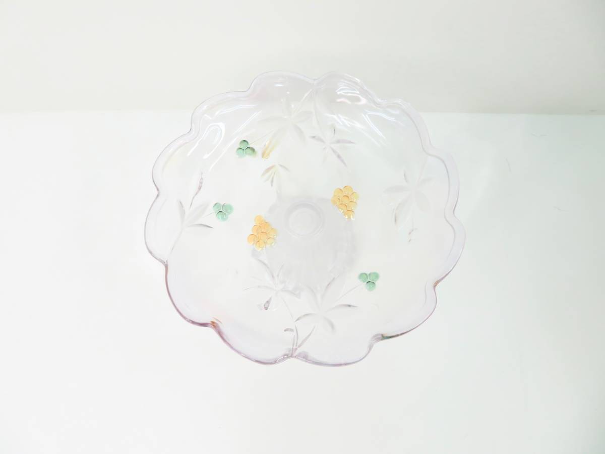 ケーキスタンド ケーキ台 ケーキ皿 ブドウ柄 木の身柄 花形 ガラス 未使用品です。