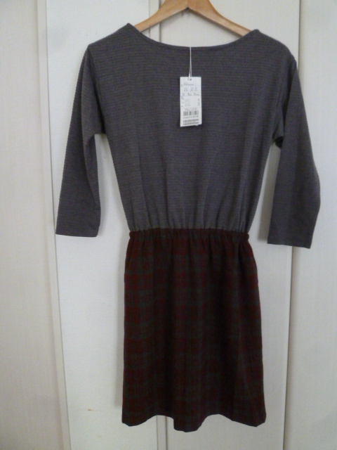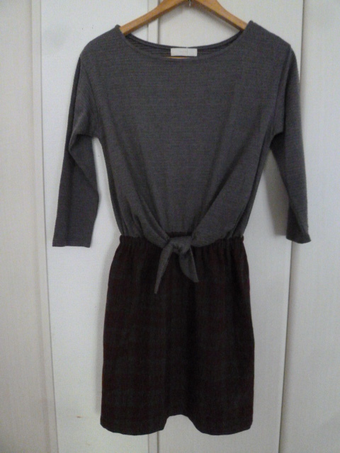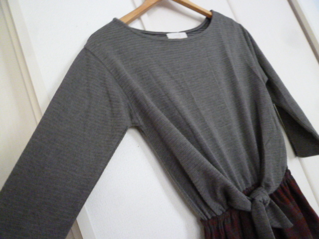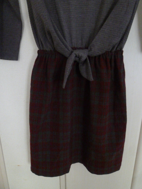 【新品】any sis/エニィシス○グレーウエストリボンあずき色格子チェック柄スカート異素材ドッキングワンピース1/オンワード樫山○OP123⑤