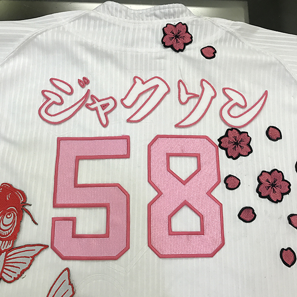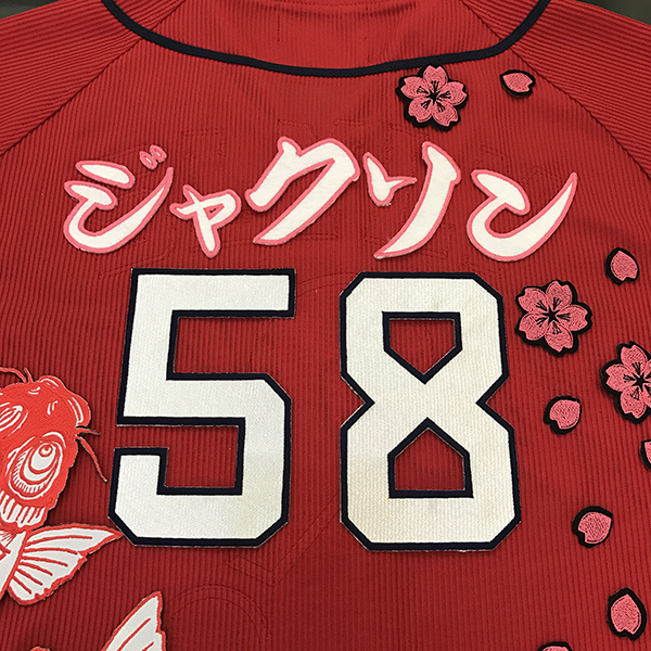 商品説明 | 広島 カープ ジャクソン選手の名前、アイロン接着用刺繍ワッペンの出品です。 アイロンにて簡単に接着可能♪♪ ※写真のユニフォーム、背番号、鯉、桜等、他の装飾品はついておりません。 名前ワッペンのみになります。 |