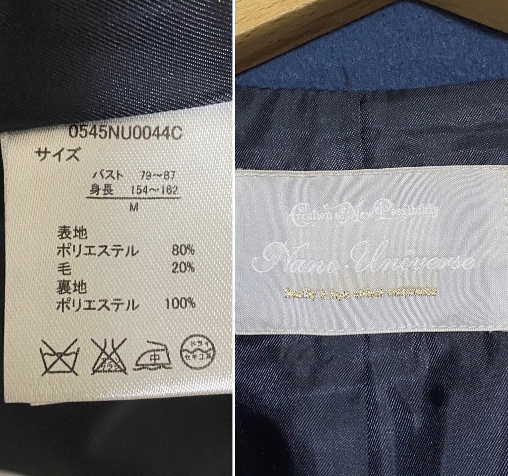 ★ nano・universe レディース チェスターコート M ウール混 ブルーグリーン ロングコート 比翼仕立て 冬 アウター