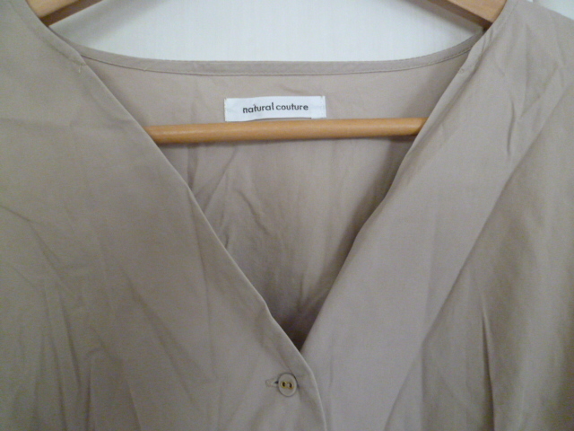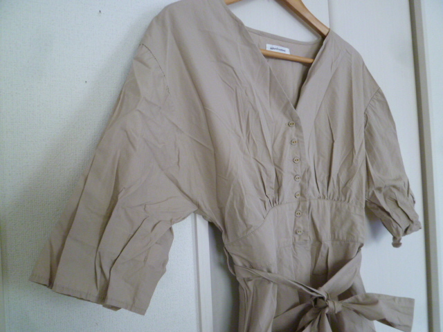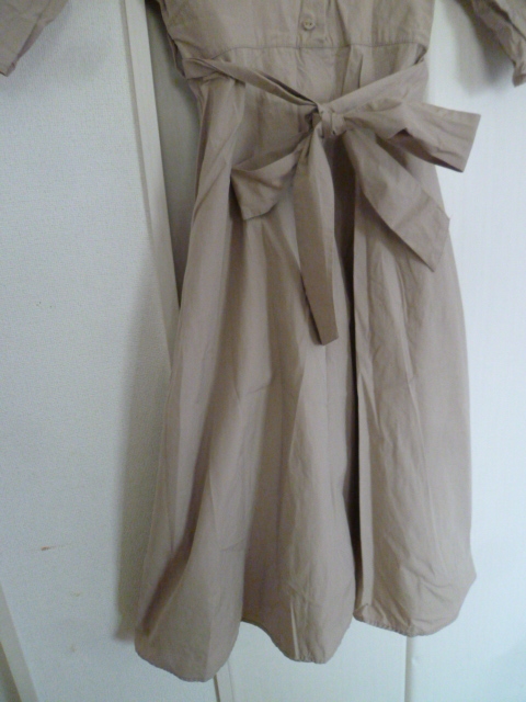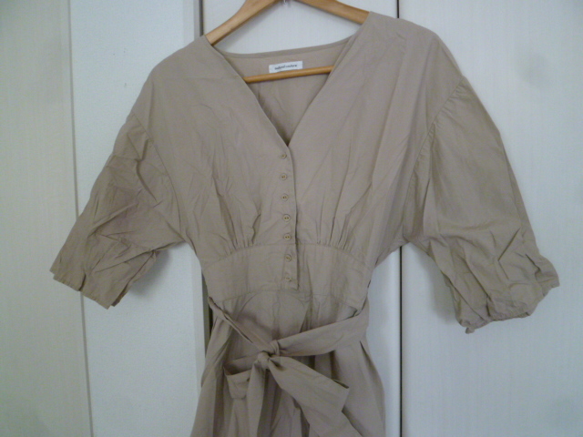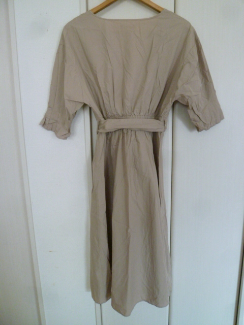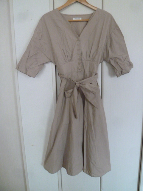 natural couture○ベージュヘンリーデザインウエストリボンロングワンピースF/ロング丈半袖○OP1111