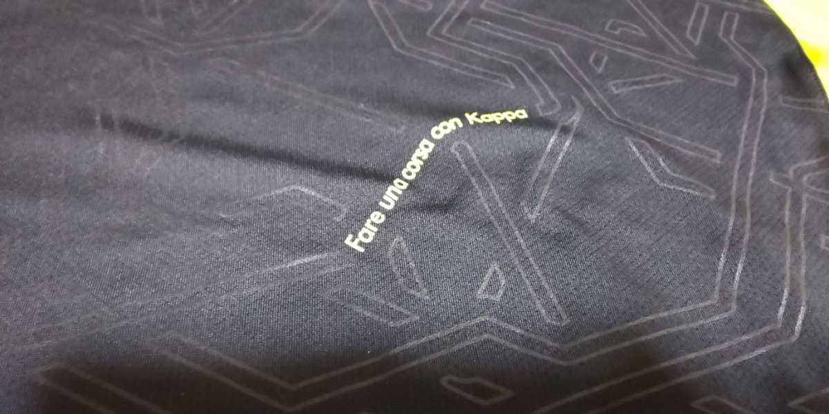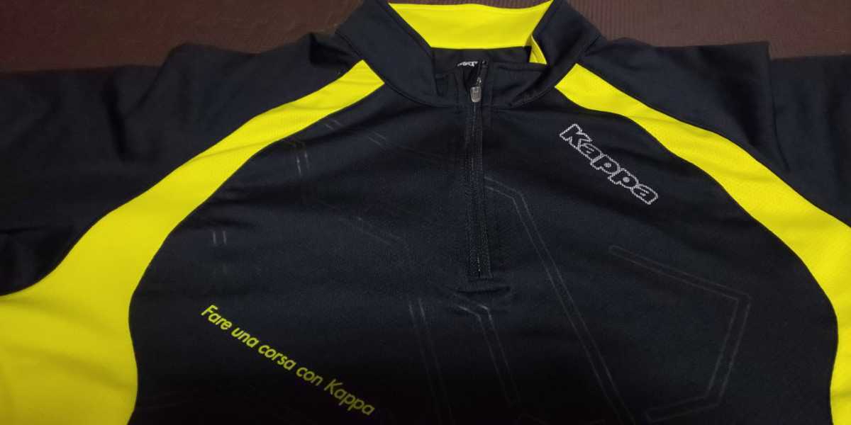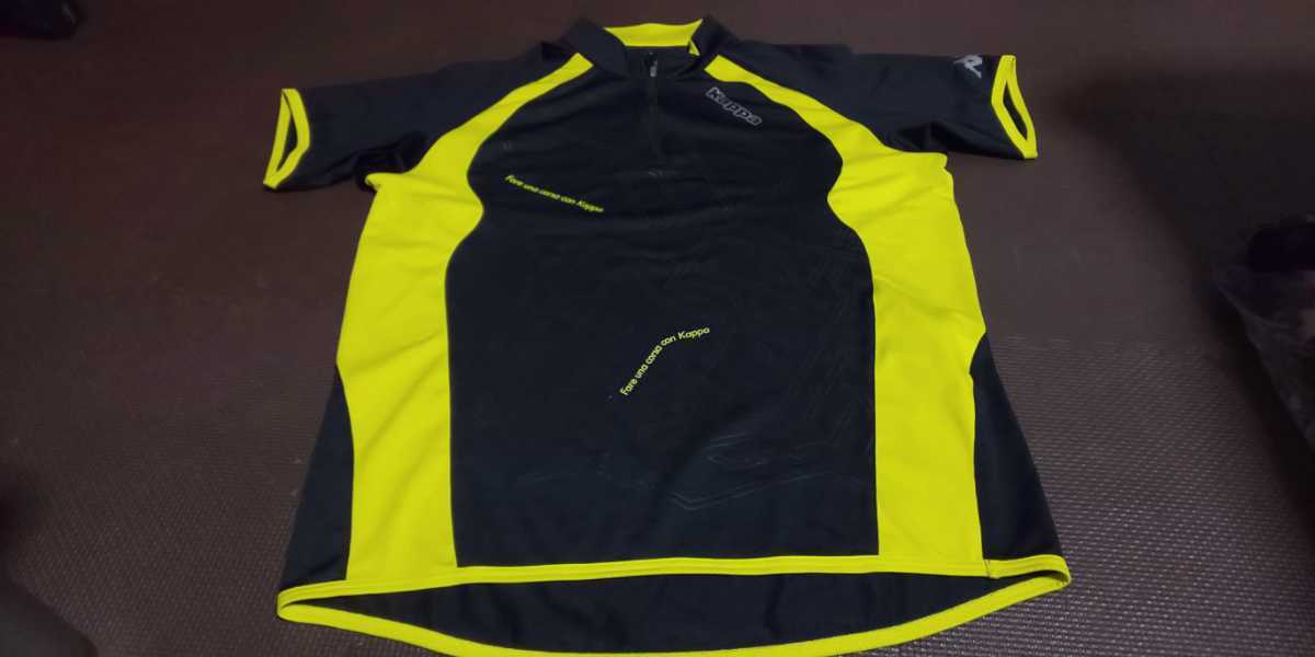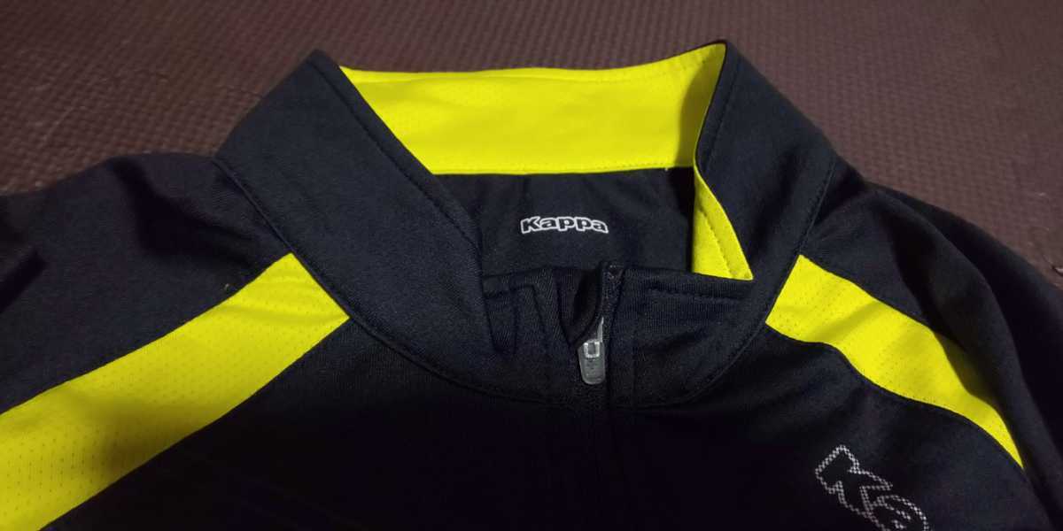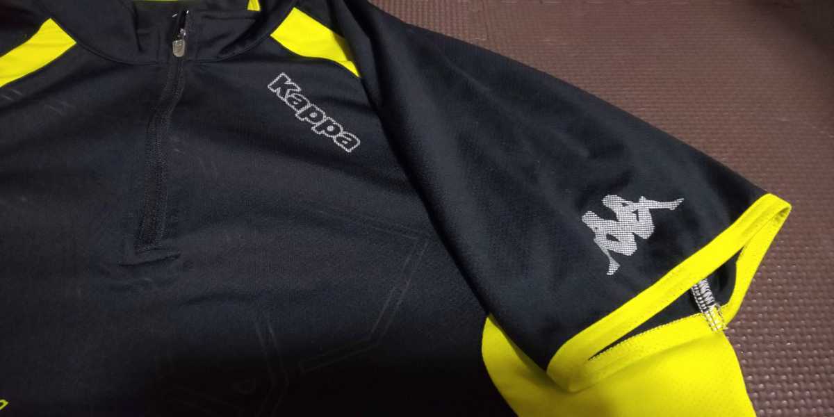 美品kappaハーフジップ黒、黄色、半袖ストレッチトップス