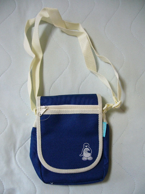 ピングー ポシェット 青 ブルー サイズ200㎜-140㎜-80㎜ 丈夫な生地 長さサイズ調整可能 ファスナー2箇所 未使用