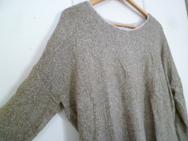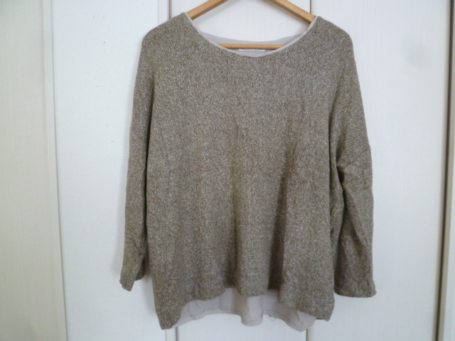 Alphabet's alphabet/アルファベッツアルファベット○茶ベージュ系ミックス背中ボタンスリットツイン風ニットセーターF/ドルマン○①ST1028