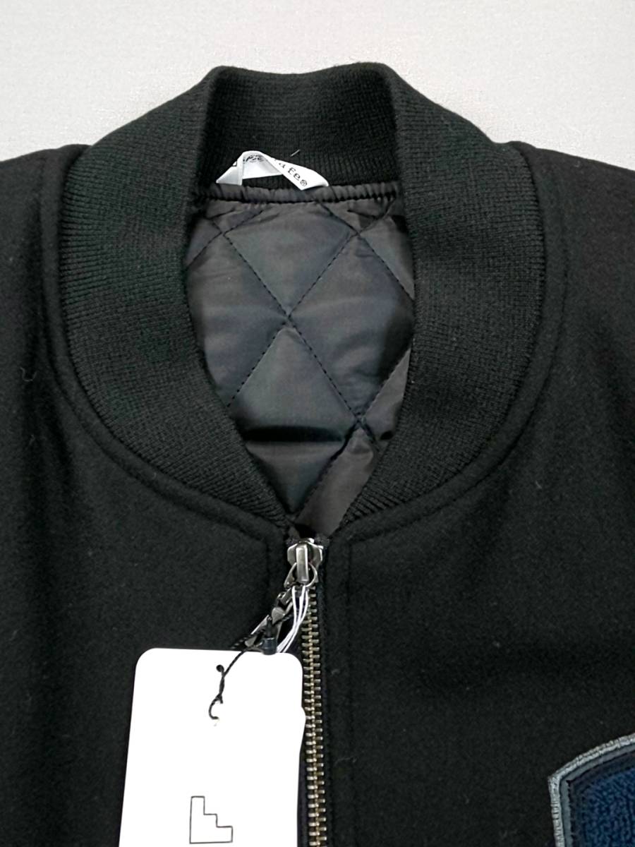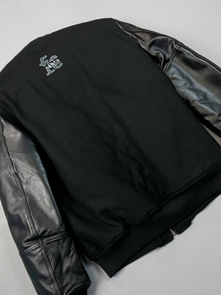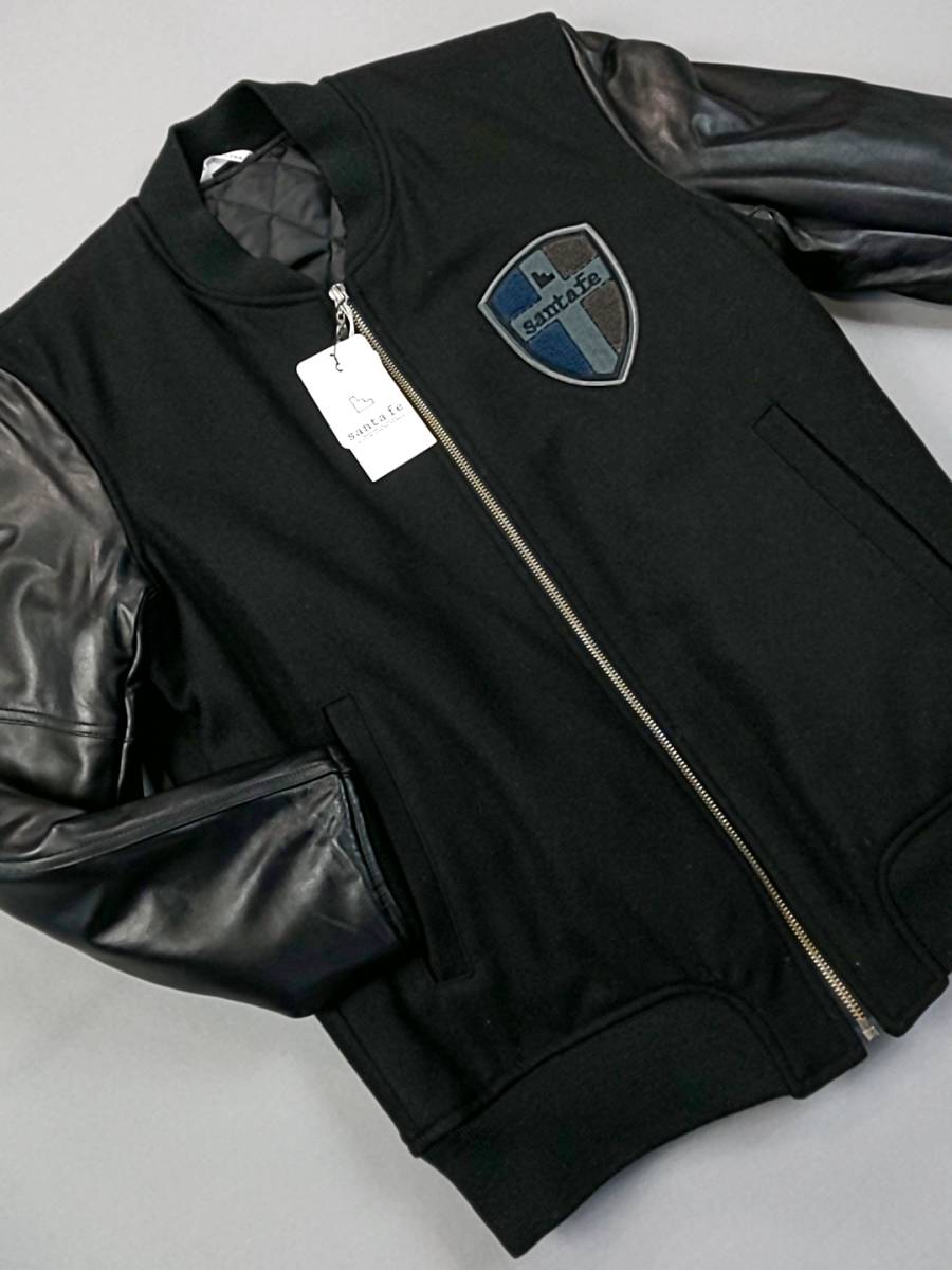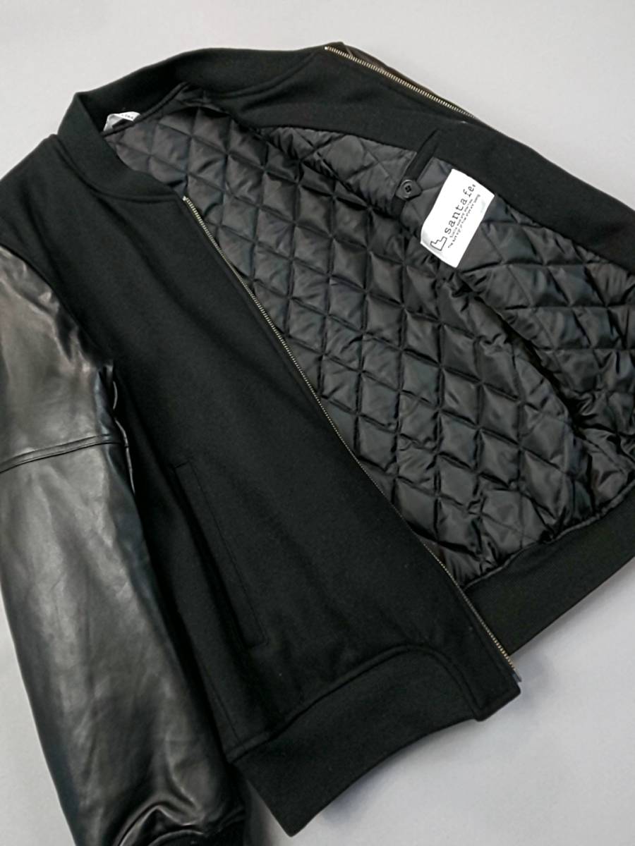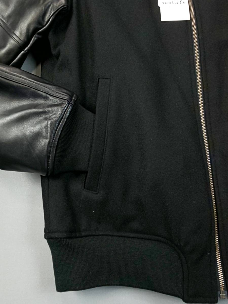 特徴                          黒のメルトン生地の身頃に柔らかいラムレザー切り替えの袖がオシャレなスタジャンです。