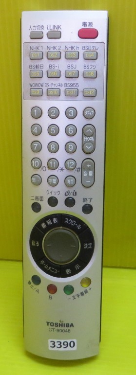 即発送!TV-3390■ TOSHIBA 東芝 テレビリモコン CT-90048 動作品 保証付