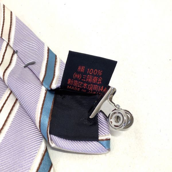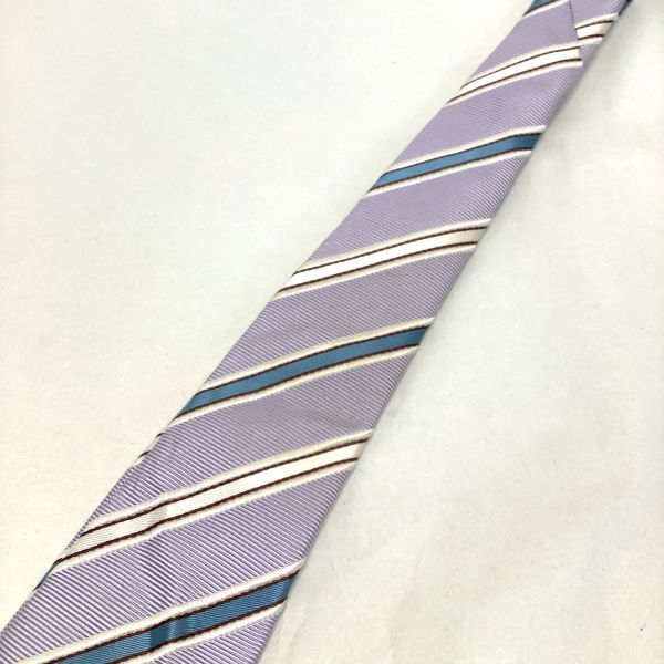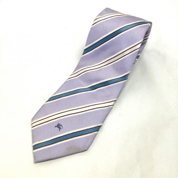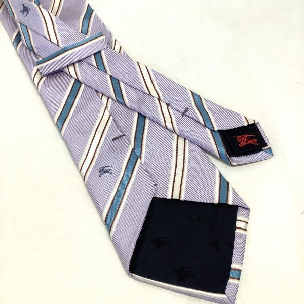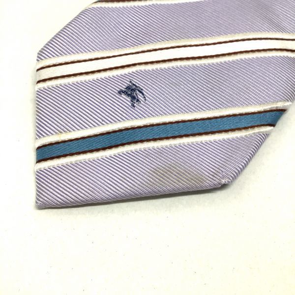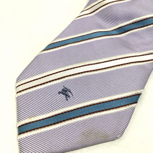 BURBERRY バーバリー シルク 絹 100% ストライプ ネクタイ パープル 紫