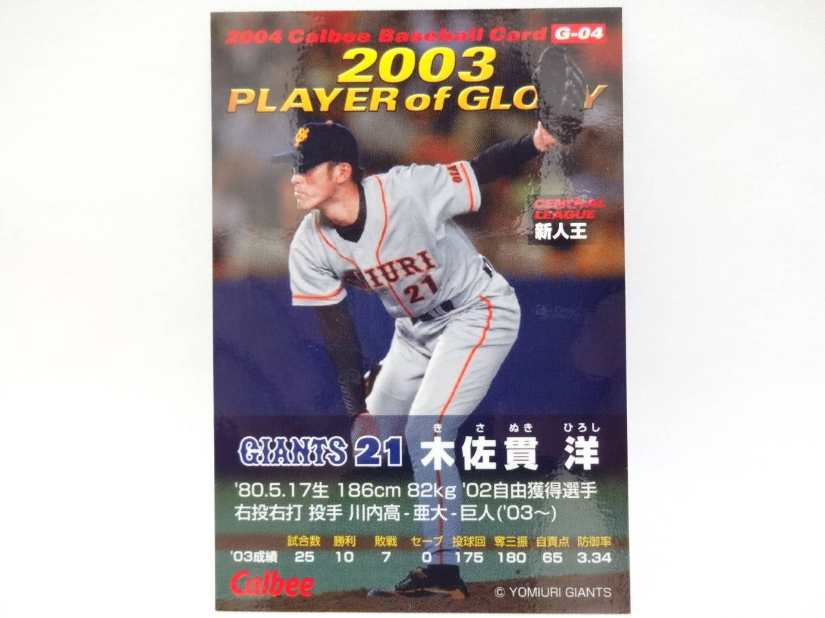 2004 カルビー 2003 PLAYER of GLORY ゴールドサインパラレル G-04 読売ジャイアンツ 21 木佐貫 洋です。