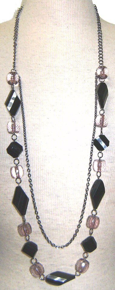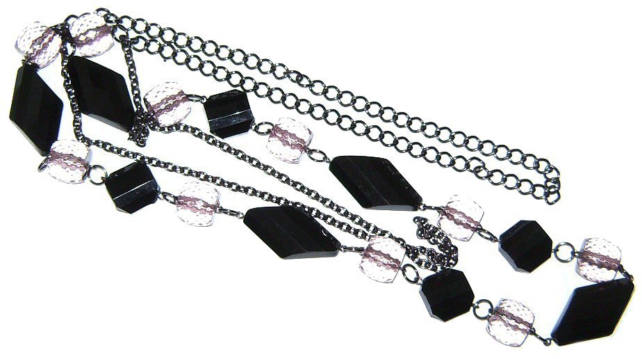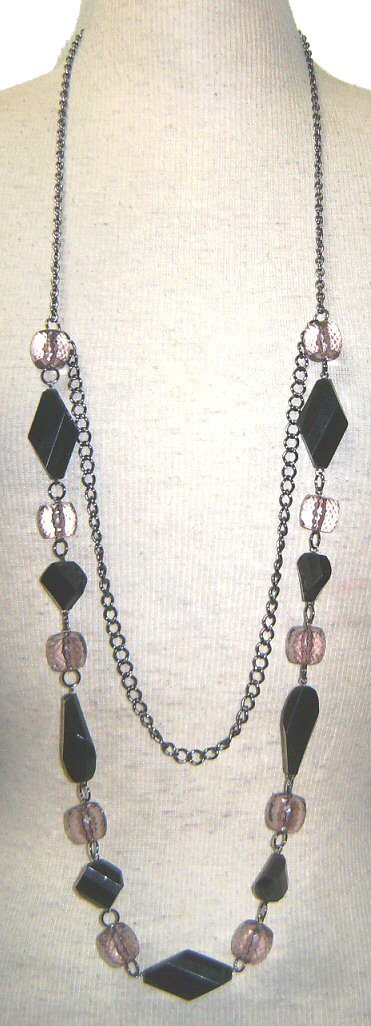 ピンク×ブラック・カットストーン・2連・2way★ネックレス