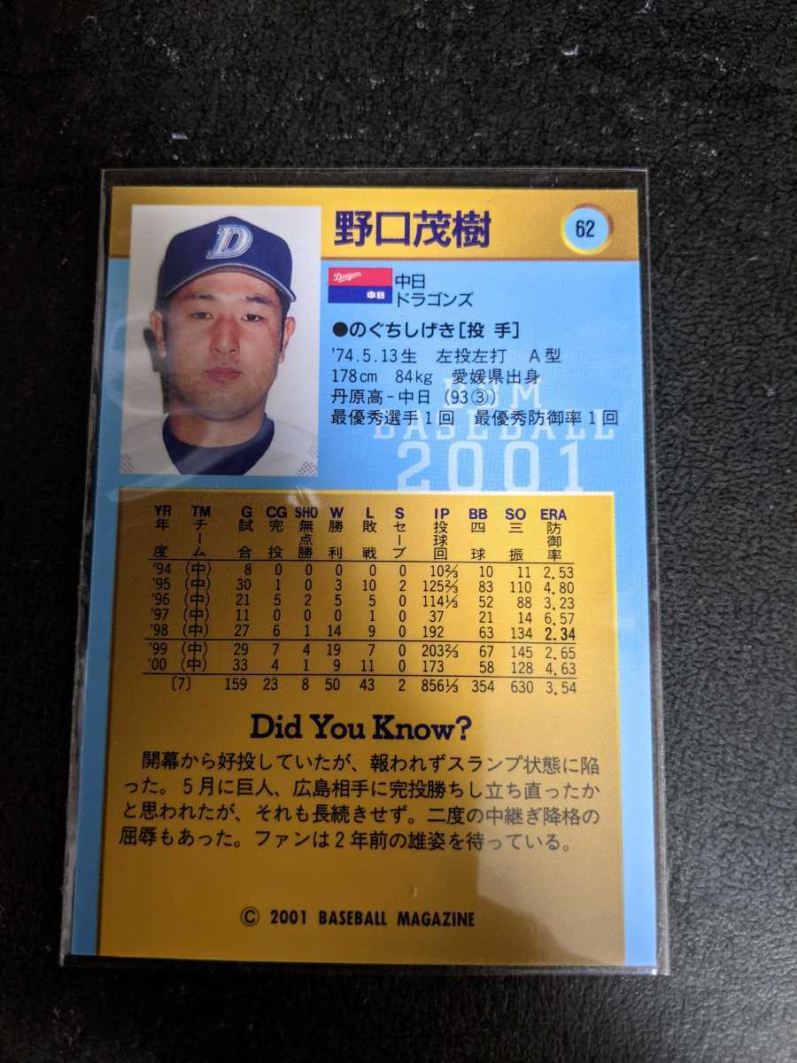 即決★BBM2001 中日ドラゴンズ 野口茂樹 サインパラレル