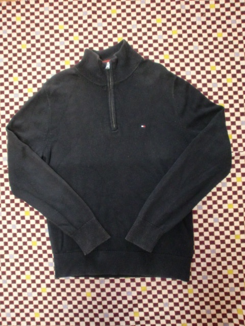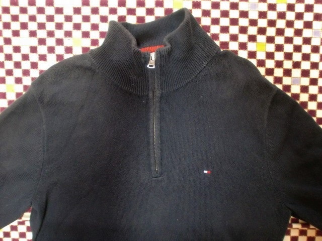 ※トラブルにならないよう、最後までお読み下さい※ 不在の連絡等、「自己紹介」に記載させて頂きますので、「自己紹介」もお読み下さい。 ●TOMMY HILFIGER トミーヒルフィガー カラーはグリーンです。 カラーは紺色です。 光の加減で白っぽく写っていますが、若干の色あせくらいです。 前面の首元にファスナーが付いています。 左胸にマーク刺繍があります。 若干の着用感ございますが、目立つ汚れや傷はございません。 着丈 約65㌢ 身幅 約47㌢ 袖丈(肩から)約65㌢ 素人ですので、誤差はお許し下さい。 記載サイズ M 綿 100% |