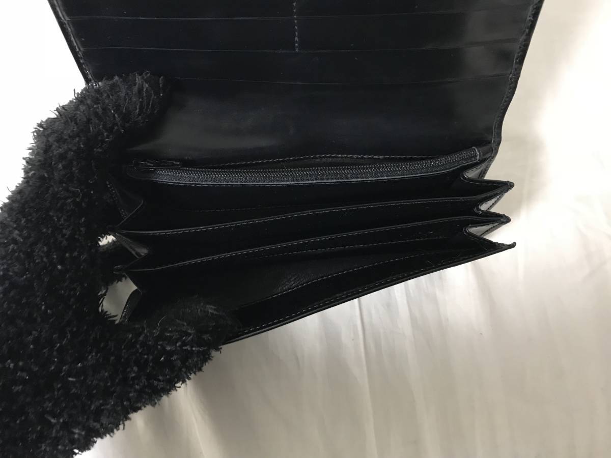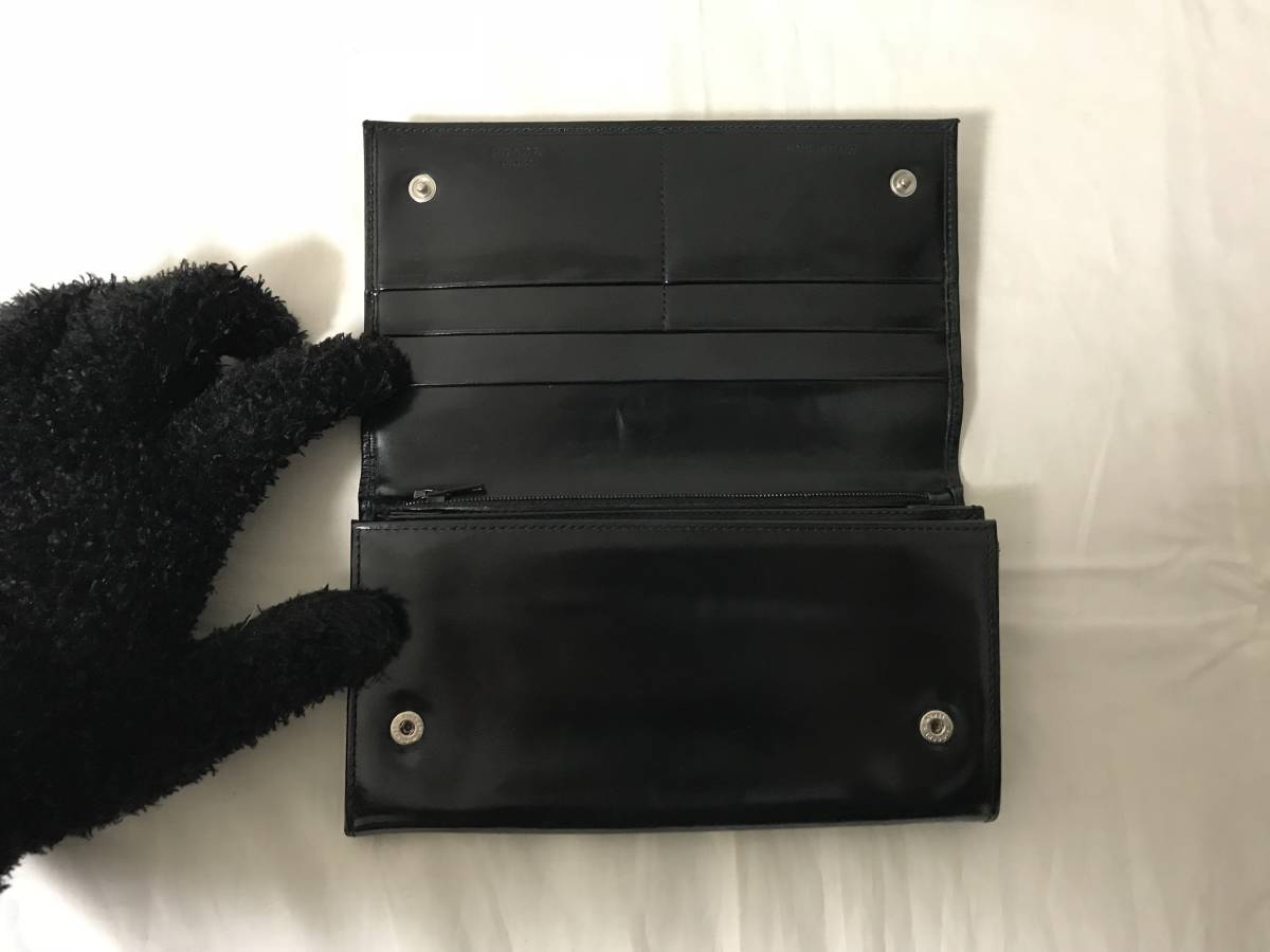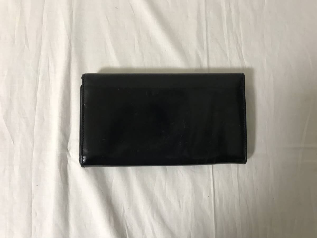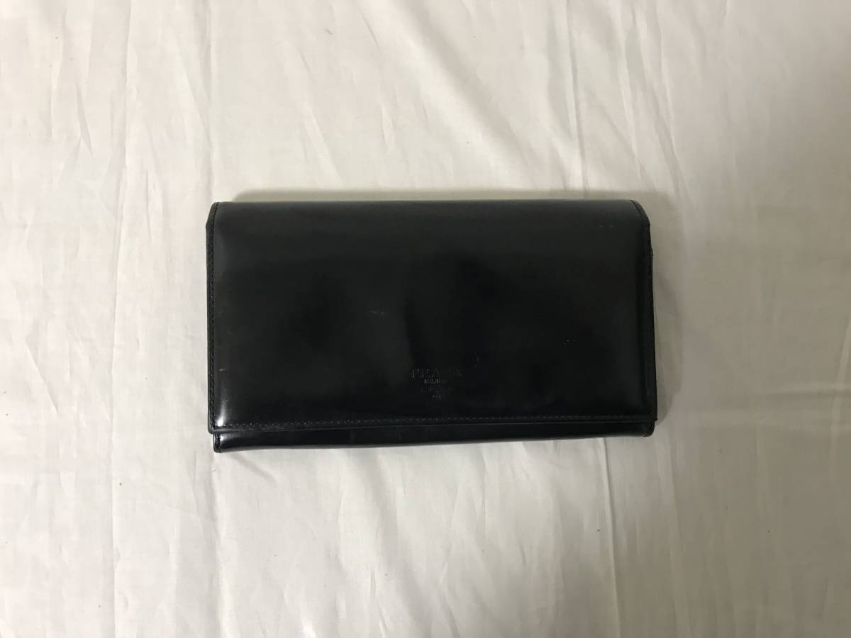 本物プラダPRADA本革パテントレザー二つ折り長財布サイフマチ付き札入れ黒ブラックコインケースメンズレディース旅行トラベル