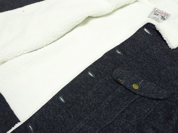 「Lee リー」と「BEAMS・ビームス」のライフスタイル・ブランド「B:ming LIFE Store By BEAMS ビーミング by ビームス」の別注コラボレーション・モデルとなる「Lee・リー」のウィンター・ジャケットの定番「ストーム・ライダー」のウール・ニット素材にボア・ライニングを施した「WOOL BOA STORM RIDER ウール・ボア・ストーム・ライダー」のサイズLARGE(40相当)になります。(品番LB0203、定価18,000円、税込み19,800円)。カラーはチャコール・グレイになります。身頃内側のボア・ライニングはホワイトになります。軽くソフトで保温性に優れたウール・ニット素材を使用し内側に保温性の高いポリエステル・ボアをライニングしたウィンター使用の「ボア・ストーム・ライダー」になります。内側ボアは保温性の高いポリエステルのホワイト・ボアを採用しておりフリース毛布を纏ったかのような暖かさを実現しています。ボタンは「Lee Riders」刻印ネオバ・ボタン、サイド・アジャストは黒のネコメ・ボタン(樹脂製)、ラベルは「EXCLUSIVE FOR B:MING LIFE STORE by BEAMS」表記の入る「STORM RIDER」プリント・タグ、ピス・ネームはMR無しのLee、R表記、両腹部に片玉縁のハンド・ウォーム・ポケットが付きます。シルエットはスタンダードなレギュラー・シルエットを採用しており、内側にレイヤードしやすいややゆとりのあるサイジングとなります。「101Jライダース・ジャケット」をベースにしていますので、ボディラインに美しく沿うように立体裁断されており、袖の裏地にはポリエステルのキルティングが使用されていますので袖だけ膨らむようなことも無く、防寒性の高いボア・ライニングながら美しいシルエットを保っています。状態は着用による使用感の少ないきれいな状態でボアが白地の為、多少のスレなどはあると思いますが、ウール地の穴あきやシミや汚れなどは無く、内側ボアも汚れやネップなども無く、袖内側のキルティングの糸切れや汚れなどのダメージも無く、全体的に使用感の少ない非常に良い状態になります。適合サイズ表記は身長175cm~185cm、胸囲96cm~104cm、実寸は肩幅約48cm、着丈(衿下より)約62cm、身幅(腋下で)約56cm、袖丈約64cmとなります。(素人採寸ですので多少の誤差はお許し下さい)。素材は表記は表地毛80%、ナイロン20%、裏地ボアポリエステル100%、裏地基布ポリエステル100%、袖裏ポリエステル100%、袖中綿ポリエステル100%。ベトナム製。ウール・ニットとボアライニングによる保温性の高い組み合わせながら軽くソフトな風合いで作られた「BEAMS」ブランドらしいアダルトでカジュアルな仕上がりになっています。 | |||