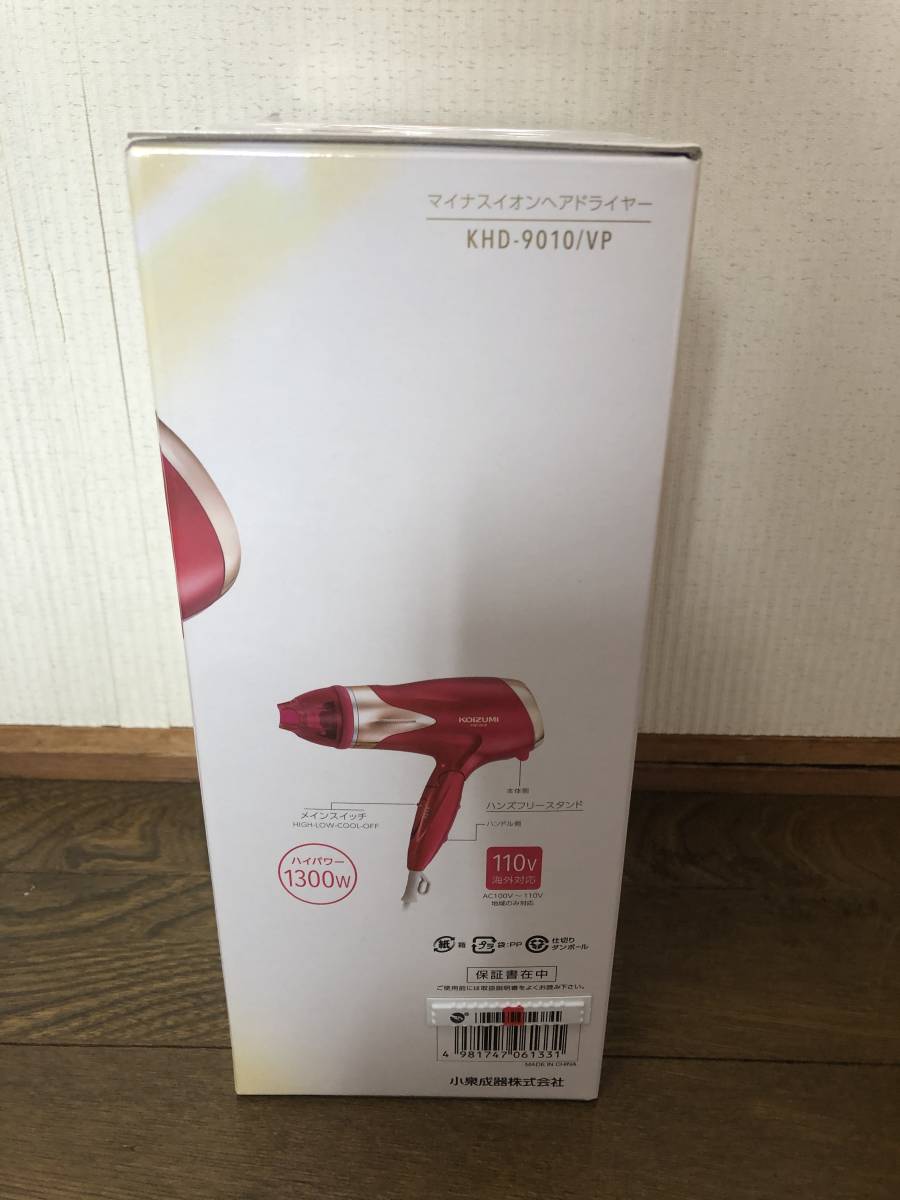 大幅値下げ!期間限定価格!新品未使用未開封KOIZUMIマイナスイオンドライヤーKHD-9010/VPです。