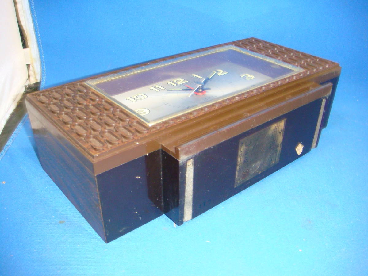 | 少し動いて止まりました、ベル鳴りませんでした。 修理や部品取りなどにご利用ください。 動作や状態についての保証はありません。 NCNRご理解のうえご検討ください。 サイズ約(ミリ) 125x250x65 ※誤差はご容赦ください。 全体的にキズやヨゴレ、使用感があります。 外観の大きな破損は無いようです。 経年による劣化、スレやヨゴレなどついていることがあります。 商品画像に写らないイタミ、キズ、汚れがついている場合あります。 完璧なものを求める方、神経質や細かいことが気になる方はご遠慮ください。 商品の状態の項目は主観のため目安程度に捉えてください。 状態については写真や説明文を確認ください。 商品の性質上NCNRです。 ご理解のうえ入札ください。 現状でのお渡しになります。 年数が経過している商品です。 説明、写真を参照いただき、商品の特性を理解していただいたうえでのご入札をいただければ幸いです。 ノークレームノーリターンでお願いします。 画面上の色はモニタなどの環境によって実際の商品とは多少色や質感が異なって見えることがありますのでご注意ください。 他にも時計関連をはじめ、いろいろな商品を出品しております。 ぜひ当方のオークションをご覧ください。 | |
