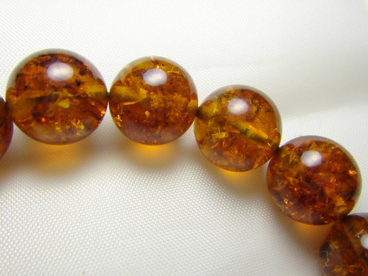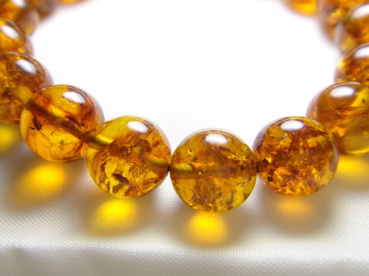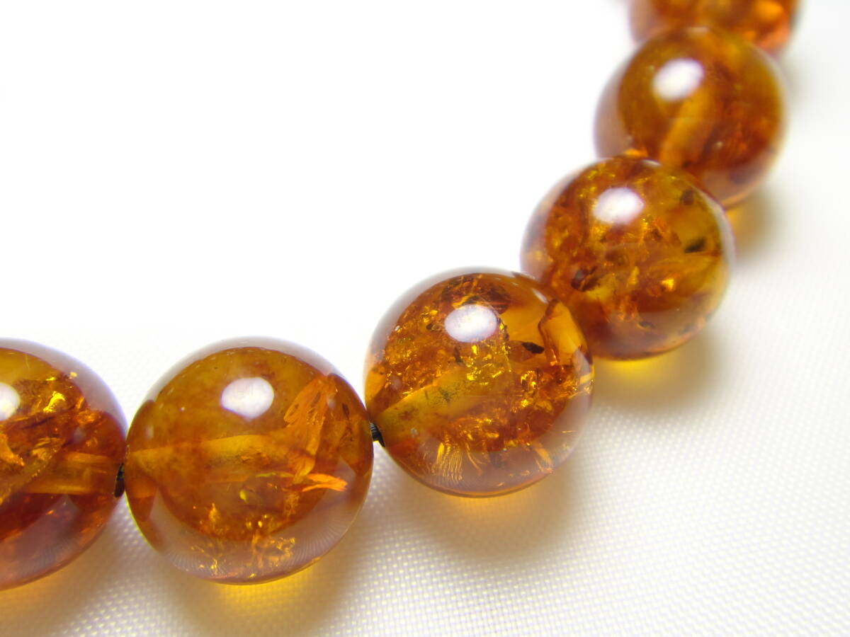 天然石 バルト海産 琥珀 アンバー 約10㎜玉 ブレスレット A780