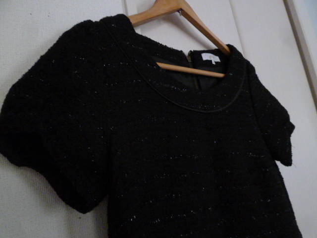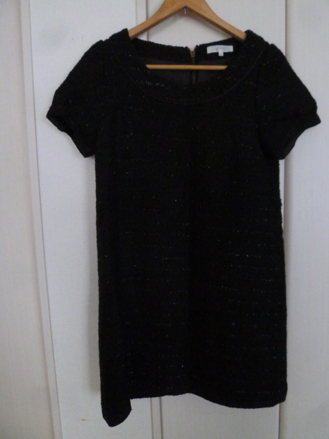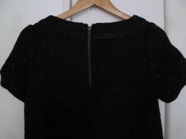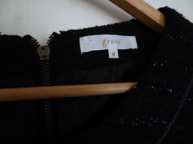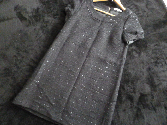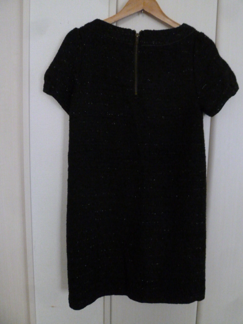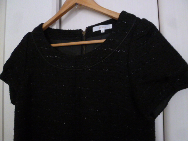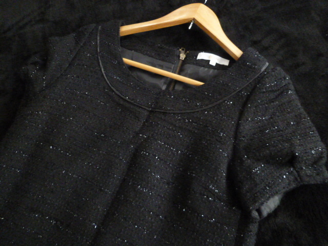 grove/グローブ○黒ツィード調ラメ背中ジップアップワンピースM/フォーマルパーティー半袖膝丈ブラックワールド○OP123②