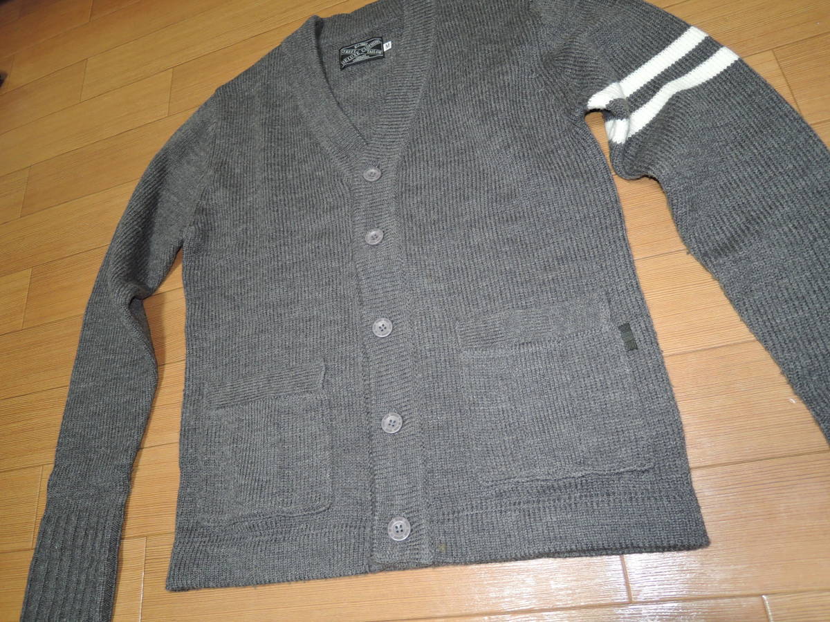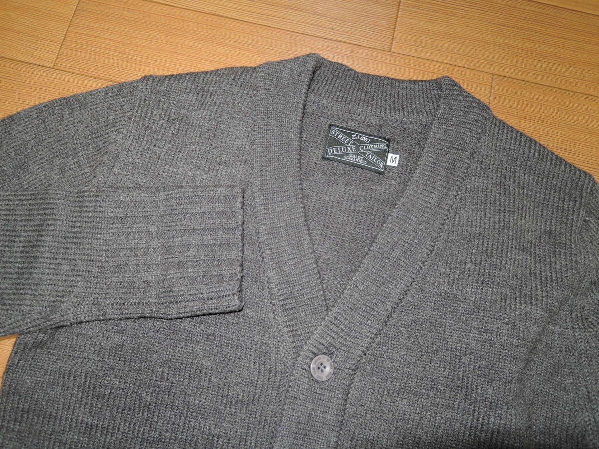 デラックス DELUXE ニット カーディガン M 灰系 ライン 美中古/